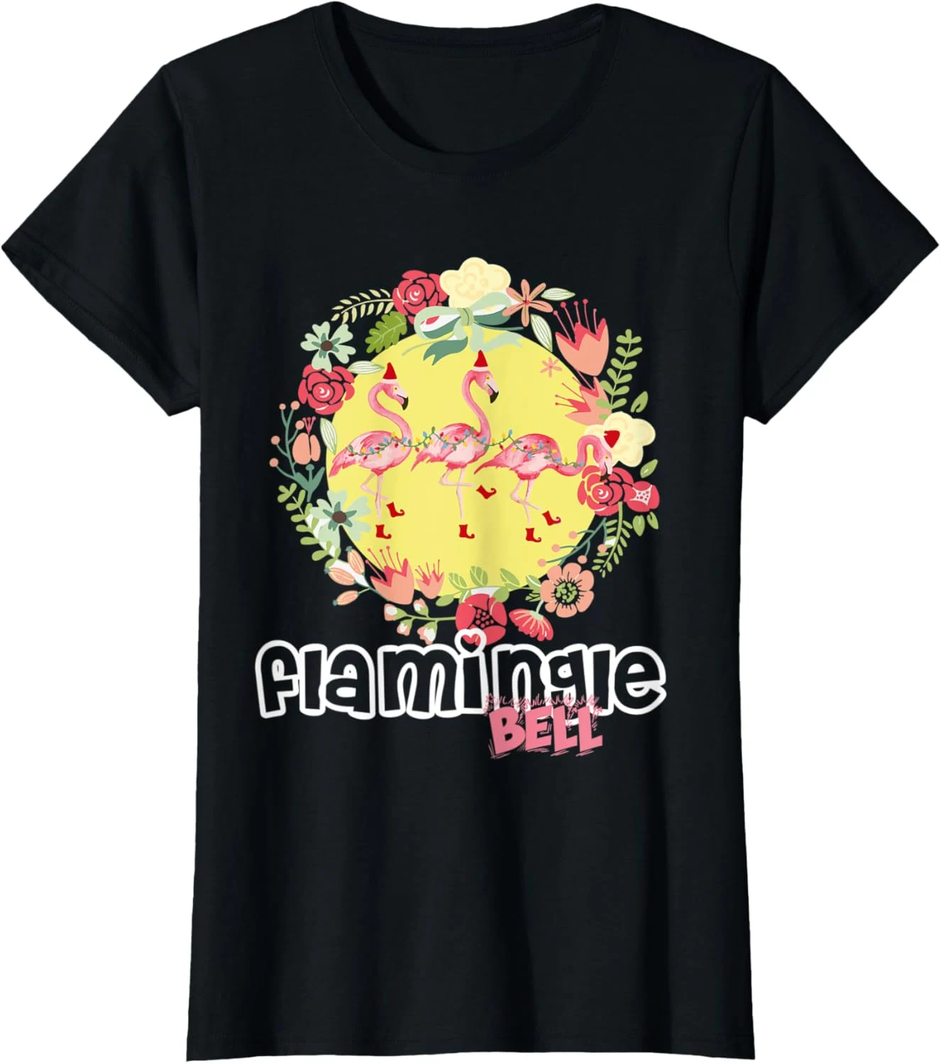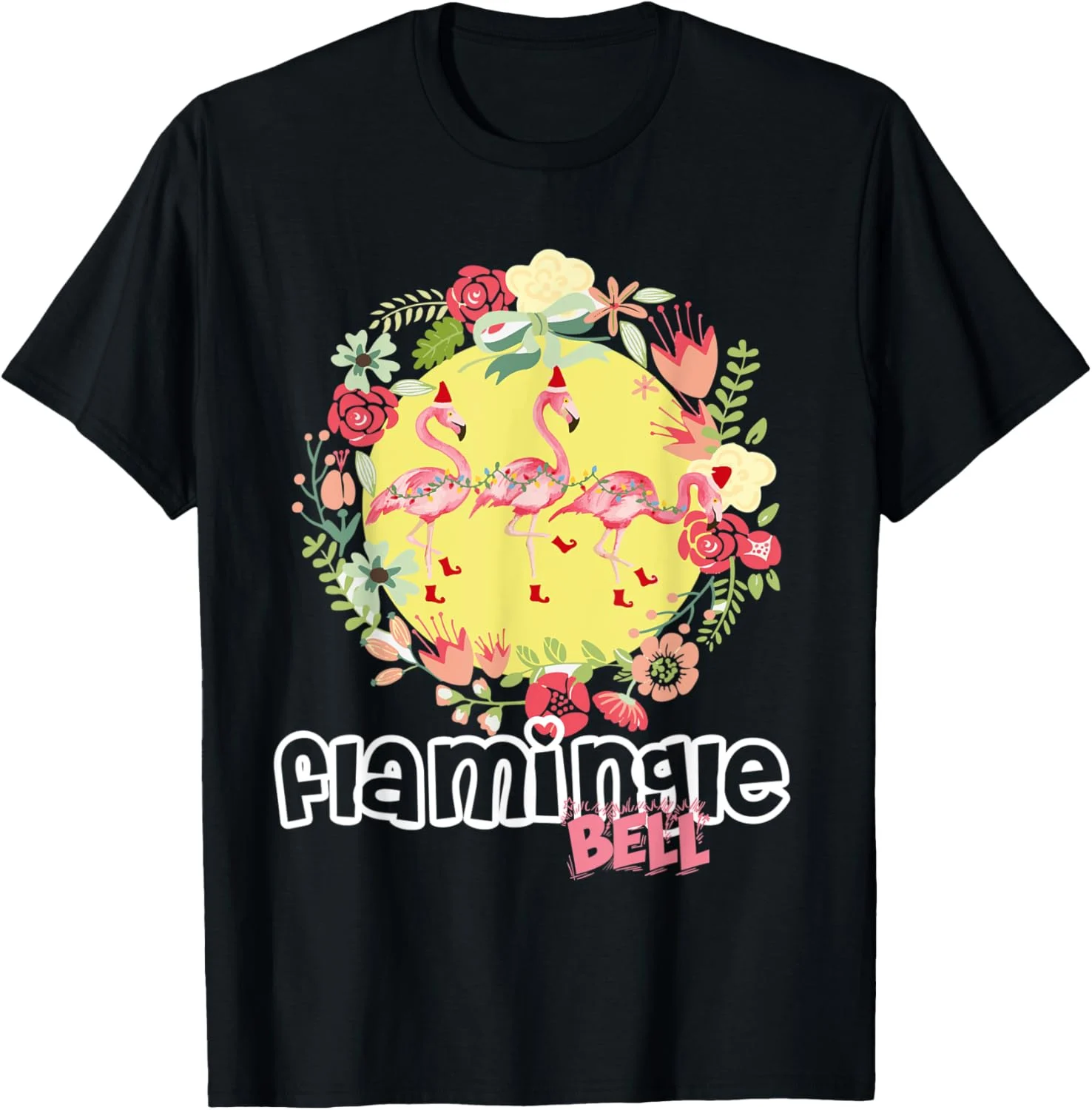 Below the illustration is the playful pun “Flamingle BELL”, printed in bold white text. This wordplay combines flamingo with the classic Christmas song “Jingle Bell”, delivering a fun and refreshing holiday message.