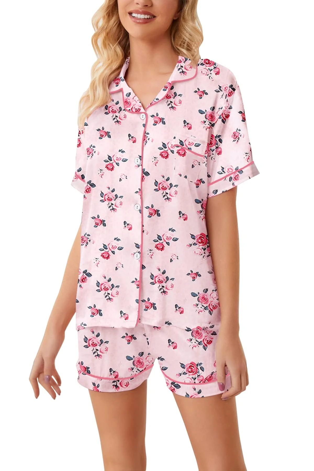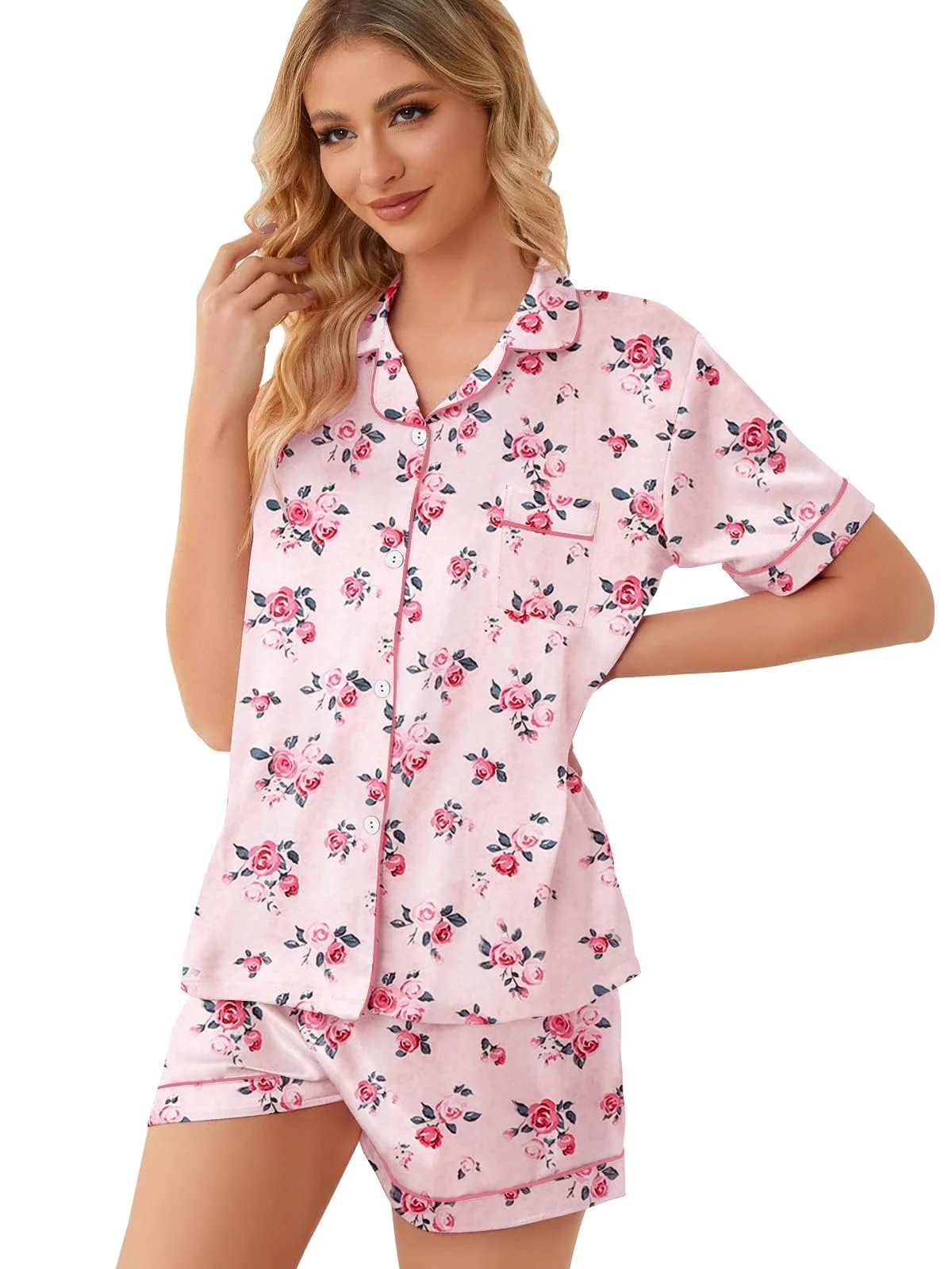 Both the shirt and shorts feature dark pink or red trim, adding a harmonious and refined touch.