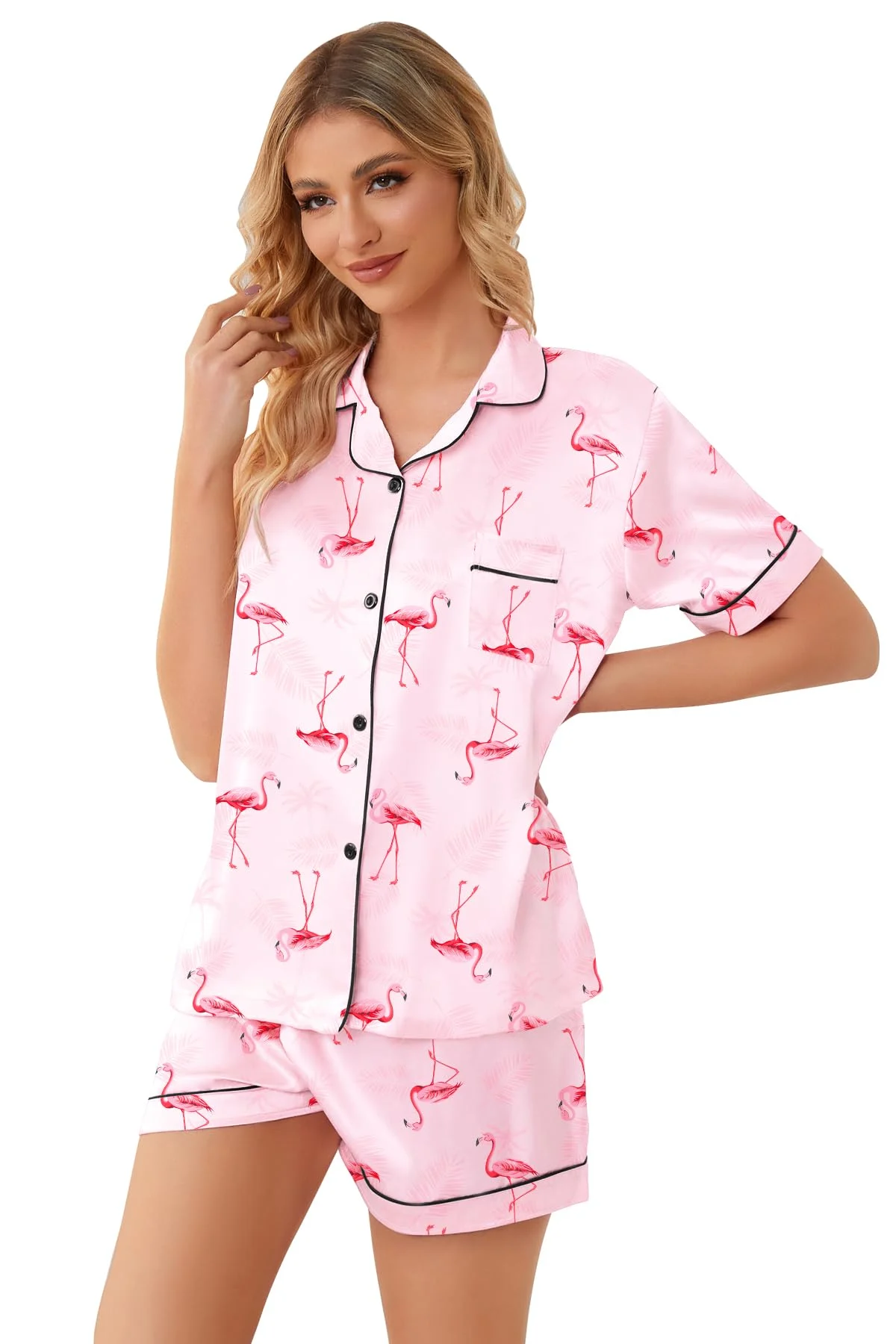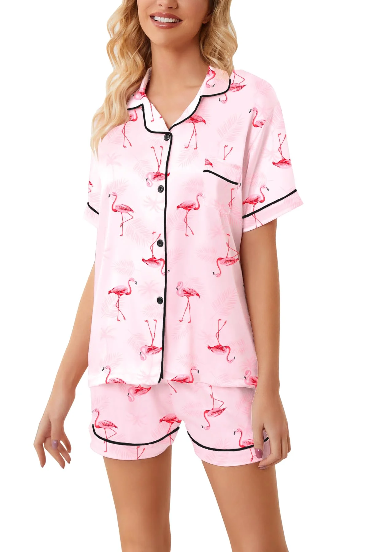 Pattern: The sweet light pink fabric is decorated with bright pink flamingos, featuring their signature long legs. The flamingo motifs are arranged randomly, creating a fun, tropical, and very fashionable look.