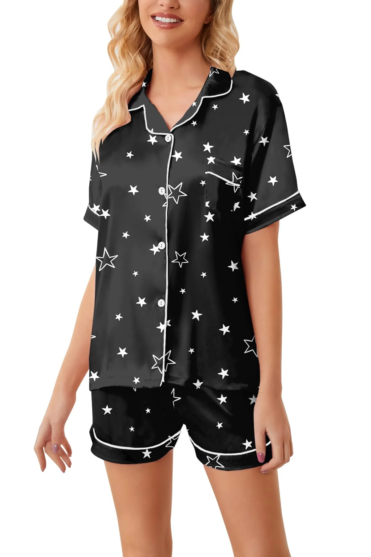 Pattern: The elegant black fabric is covered with white star motifs in various sizes (solid and outlined stars). This classic black-and-white combination, paired with the starry night sky design, creates a captivating and timeless look.